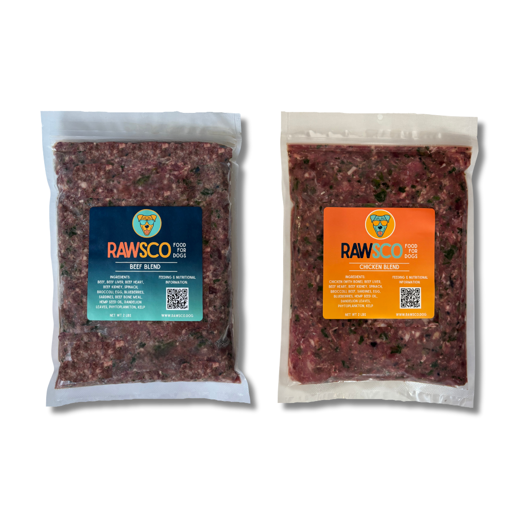 - 4 pouches of Chicken Blend & 4 pouches of Beef Blend